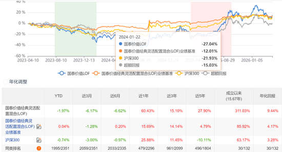 徐治彪曾经主要是投医药的,后续转全市场,定位是深度研究型选手,从全行业选股的国泰价值来看,不算特别差,A股前面三年跌的稀里哗啦的时候,他相对回撤控的还行。
